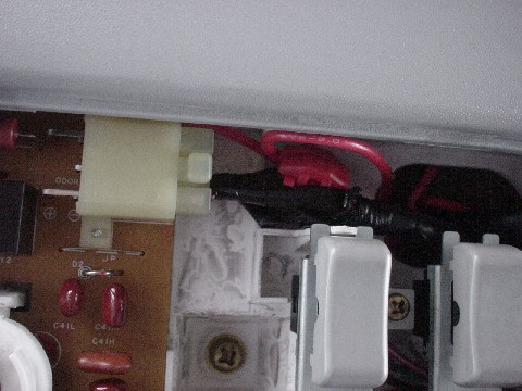 | リアルームスイッチのDOOR配線に割込みをするだけです。 |
