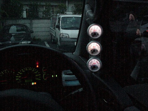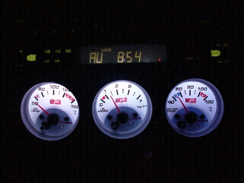 | ・純正のコネクタを抜く ・配線を室内に引き込む ・四股に純正オイルプレッシャースイッチ、油温センサ−、オイルプレッシャースイッチをつける ・電源とイルミ用電源を接続する ・メータを設置する。 |