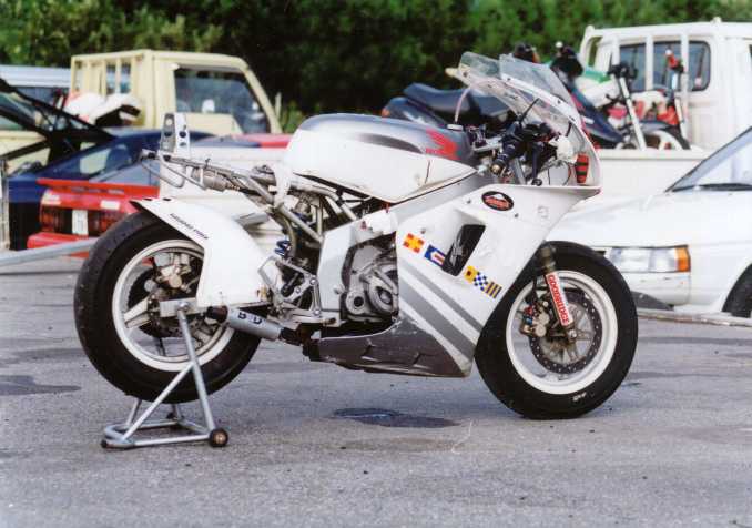 タンクの上のホースはダミーではなくちゃんと機能してます。よくみると乾式クラッチが・・。当時89以降のアッパーカウルに88のスクリーンが流行ってました。改造履歴を書くときりがないのでこの辺で。 |